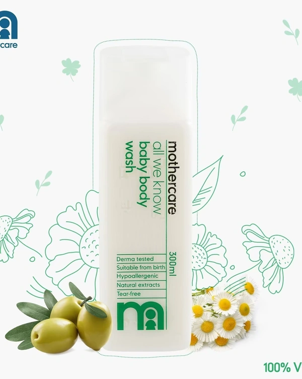 All Mothercare's specialist know-how goes into our All We Know Baby Body Wash. The soap-free formulation contains one-third moisturiser, including olive oil and soothing chamomile, to keep your baby's skin soft and beautiful.