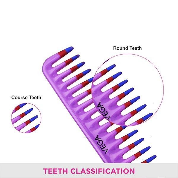 Using this purple ultra wide detangling comb smoothly detangle both wet and dry hair in a jiffy, regardless of the length or texture of your hair. This comb also provide a stimulating scalp massage and aids conditioning. It helps in imparting a smooth finish prior to styling or even post-styling. The strong teeth enable faster and better gliding anytime, anywhere.