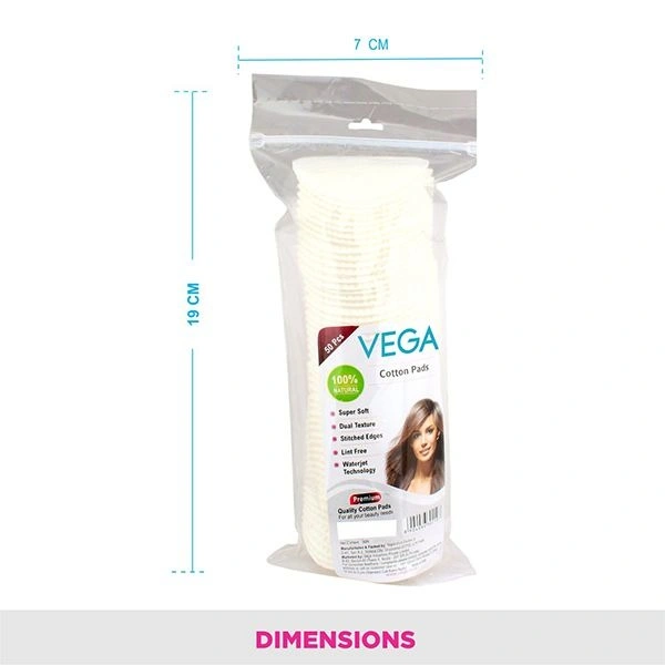 VEGA cotton pads are made from 100% natural cotton which is highly absorbent. It is gentle on the skin, untouched by hands, and is ideal for make-up removal.