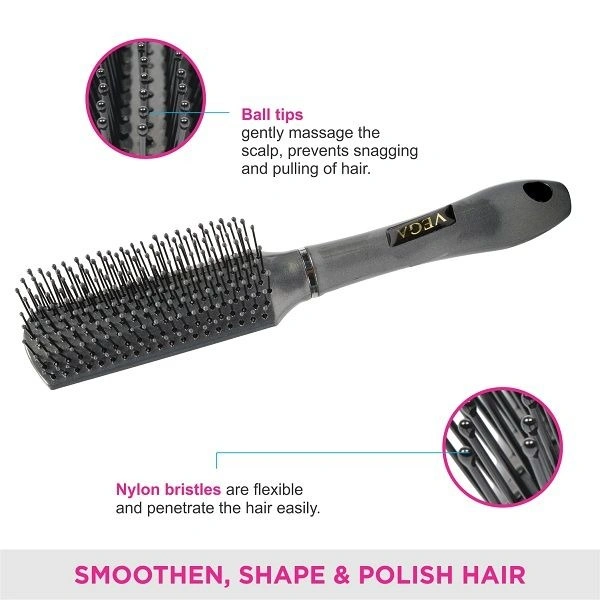 This Vega Flat Hair Brushes are best for the daily styling of hair to impart an even texture and volume.These brushes are designed to provide grip and control to the hair for smoothing, styling, de-tangling and delivering the right finishing touch. It's best suited for short to medium hair length. It's compact and can be used by both men and women for a smooth and quick brushing experience. The greybody along with an ergonomic handle makes this flat brush a must have for your daily use.